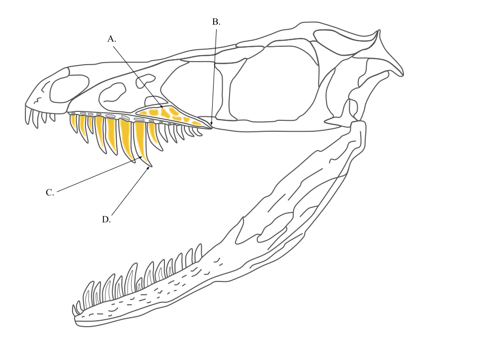 ただし、頭骨の構造を見ると、上あごの前歯と奥歯の間(人間でいう犬歯のあたり)に隙間があります。
