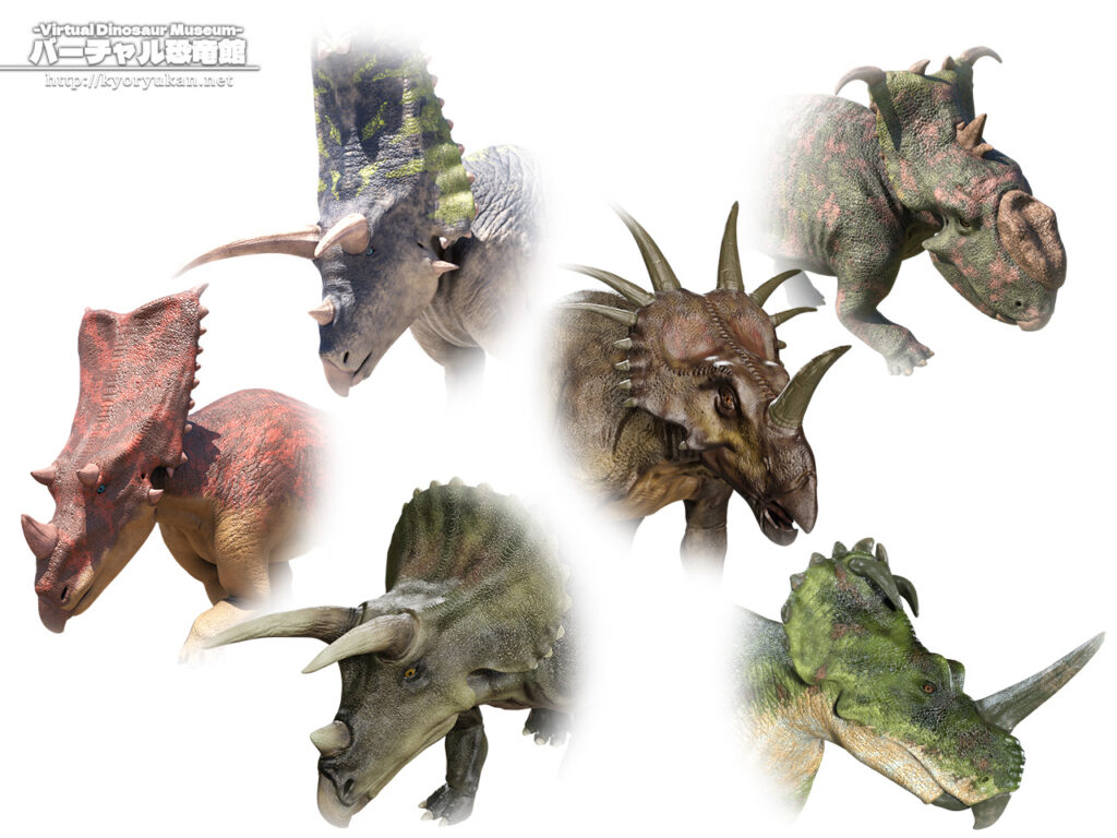 角竜類は大きく分けて、目の上の立派なツノが特徴の「カスモサウルス亜科」と、フリルの周りのトゲが発達した「セントロサウルス亜科」に分類されます。